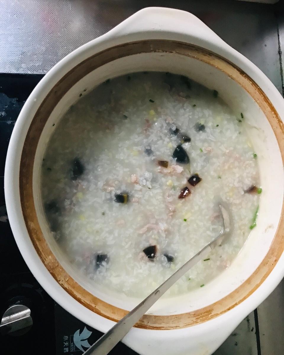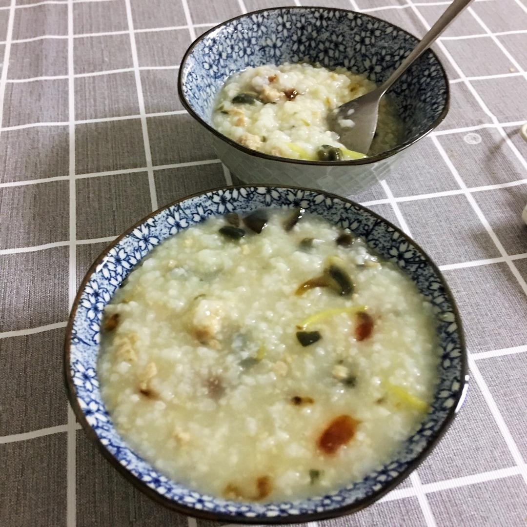 鸡肉皮蛋粥~