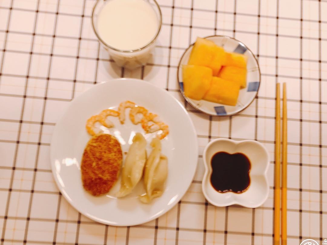 锅贴+蟹壳黄+豆浆+哈密瓜,拍了护了点