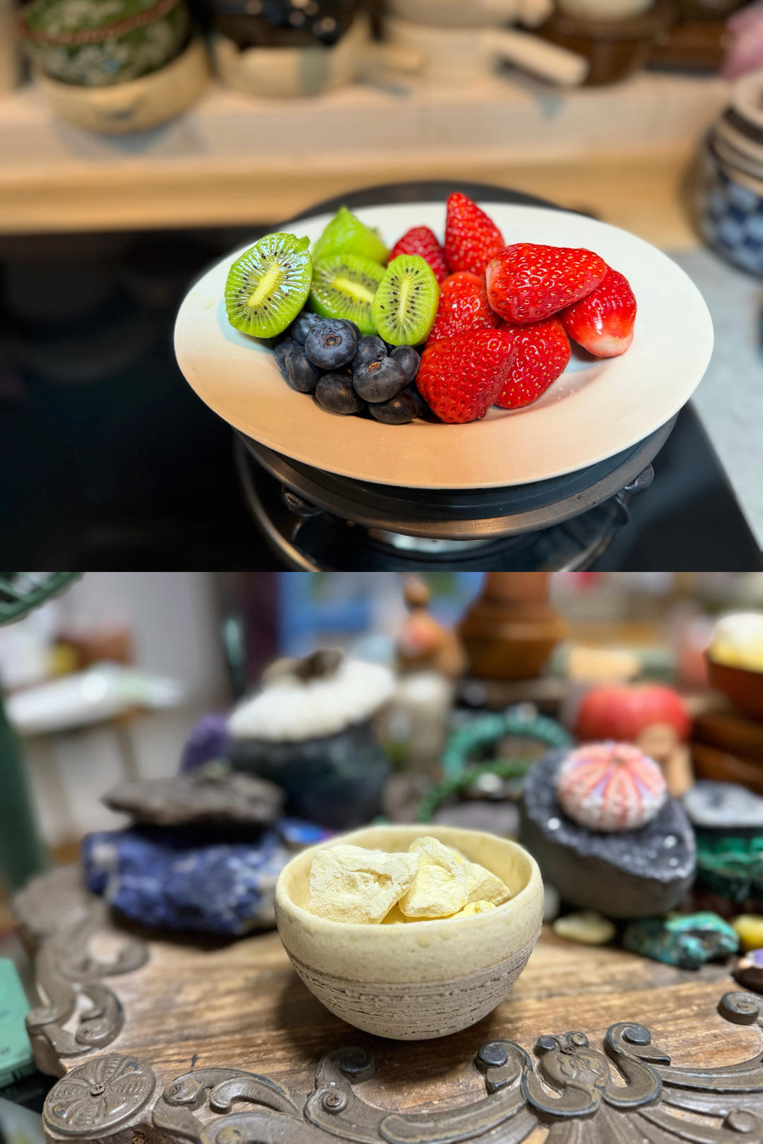 🫐🍊🍁🐚脆甜又大颗的蓝莓,橄榄菜炒宽扁四季豆,鲍鱼捞饭,梅干菜香肠,涌泉蜜桔,酸汤火锅菜,好吃的冰糖葫芦,还有丑丑的石头...