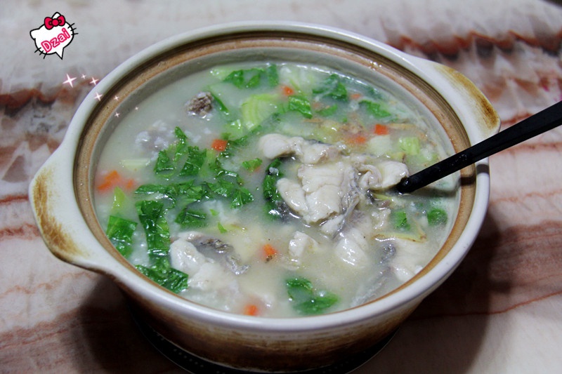 黑翅鱼肉做的鲜鱼粥,加了两块排骨,胡萝卜丁和生菜。吃的时候来点胡椒粉。好暖胃!