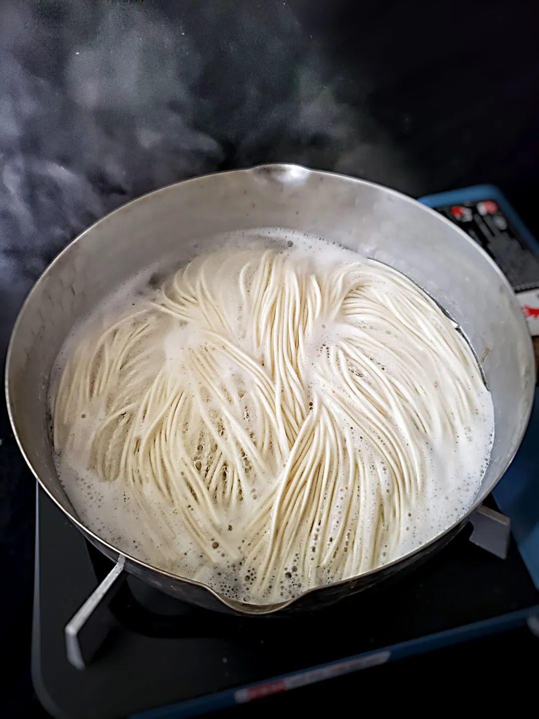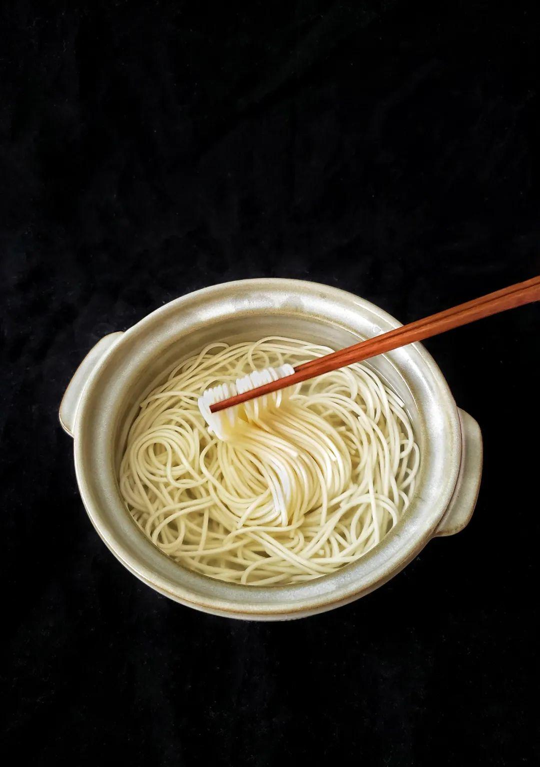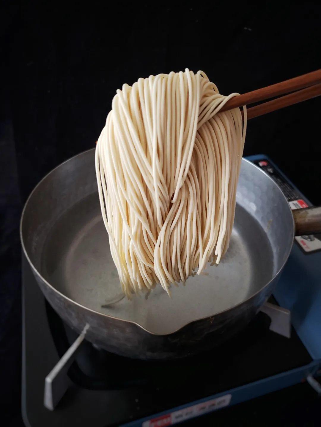 如果时间充裕的话,可以过一道冷水,面条会更加劲道,赶时间可以忽略这一步